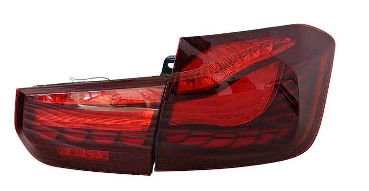 1. Ексклузивен червен капак с дизайн на текстура на драконова скала, надградена задна светлина с драконова скала с червена леща за BMW Серия 3 F30/F35, перфектно съвпадаща с естетиката на каросерията на BMW Серия 3 F30/F35, увеличавайки максимално разпознаването на задния край.